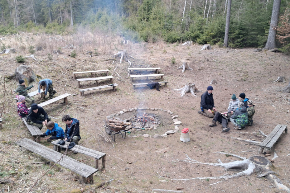 V pátek jsme došli na srub, dali si večeři a šli spát. V sobotu jsme se protáhly a dali ovesnou kaši s marmeládou a pustily jsme se do dopolední bojovky. Děti se rozdělily na 4 týmy a museli propašovat ingredience do svých kotlíku, pak jsme si z nich venku na kamnech uvařili guláš. Po poledňáku jsme se střídali u stanovišť: mapa, zdravověda, tarp a uzly. Ke sváče byla vajíčková pomazánka s chlebem a okurkou. Do večeře jsme čistili les od větví a pálily se v krbu. Po rizotu, jsme se přesunuli ven a hráli se orchideje. V sobotu jsme všechno poklidili, dali si vývar a vydali se domů.